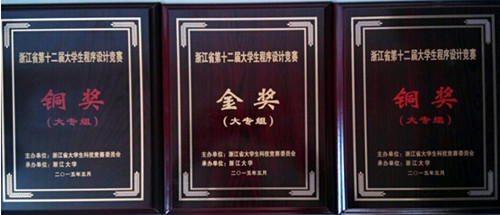 浙江省第十二届大学生程序设计竞赛于4月25日在浙江大学紫荆港校区成功落下帷幕,我院计算机与信息技术系高兴媛、相方莉老师带领4支代表队参赛。经过5个小时激烈角逐,由徐浩(12计信)、张斌斌(13计信)、马辉(12商英1)组成的代表队获得大专组金奖;由刘永杰(13软件)、胡立凡(14软件)、徐子豪(14软件)组成的代表队获得大专组铜奖;由倪超(14软件)、余廷豪(14软件)、张莉(13网络)组成的代表队获得大专组铜奖;