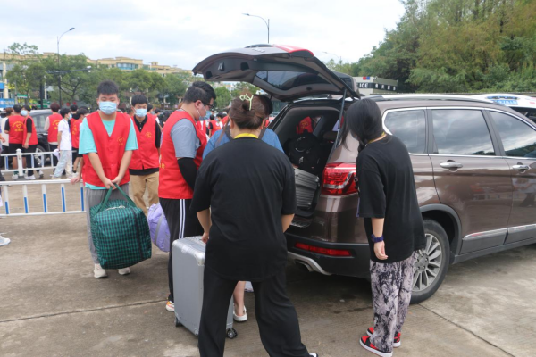 为方便新生来校报到,学校在火车东站、汽车总站等交通枢纽设立了接站点,为新生们提供接站服务。志愿者们早早守候在各车站出站口,只为让新生在第一时间感受到学校的温暖,并热情地为新生搬运行李。
