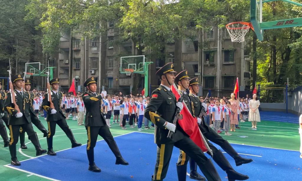 9月1日上午,学校国旗仪仗队的退役军人们走进西湖小学,以一场特别的升旗仪式庄重迎接开学第一天。