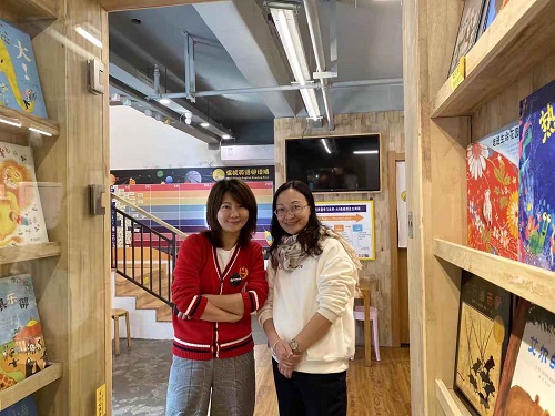张意雯带领大家参观了温妮英语馆,详细地为大家介绍了馆内情况。参观后,双方进行了座谈。汤丽拿介绍了我校幼儿发展与健康管理专业的基础课,就其中的《幼儿英语》《双语绘本》两门特色课程的教学设计、教材选择方面提出了新的问题,指出幼儿英语教学应注重理论和实操相结合的方式,注重培养幼儿听、说、唱、玩的技能,并为老师和同学们展示了题为“Five littlemonkeys”的儿歌与故事相结合的绘本教学。