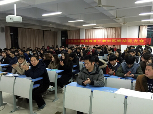 为迎接省教育厅专家组4月中旬对我院教学巡回诊断检查,2016年3月10日晚18:30,商务系团总支在2204教室组织召开了迎接省教育厅教学巡回诊断检查动员大会。