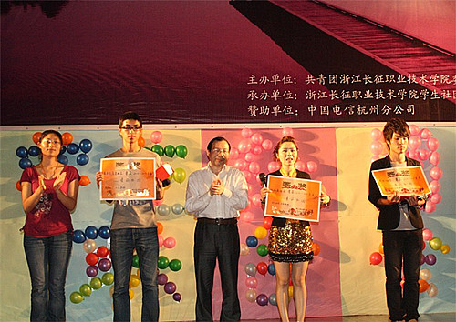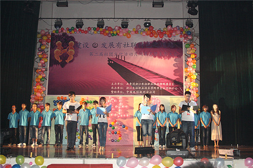 5月26日晚18:00,又是一次欢乐的相聚,我院第二届社团活动月闭幕式暨总结表彰大会在我院体育馆隆重举行。莅临本场晚会的有院党委副书记洪骏,团委书记陶元,团委副书记戴丽娟及语言系党总支书记杨军等各系老师。并邀请了浙工大的两位主持人和社团共同参与本次晚会。